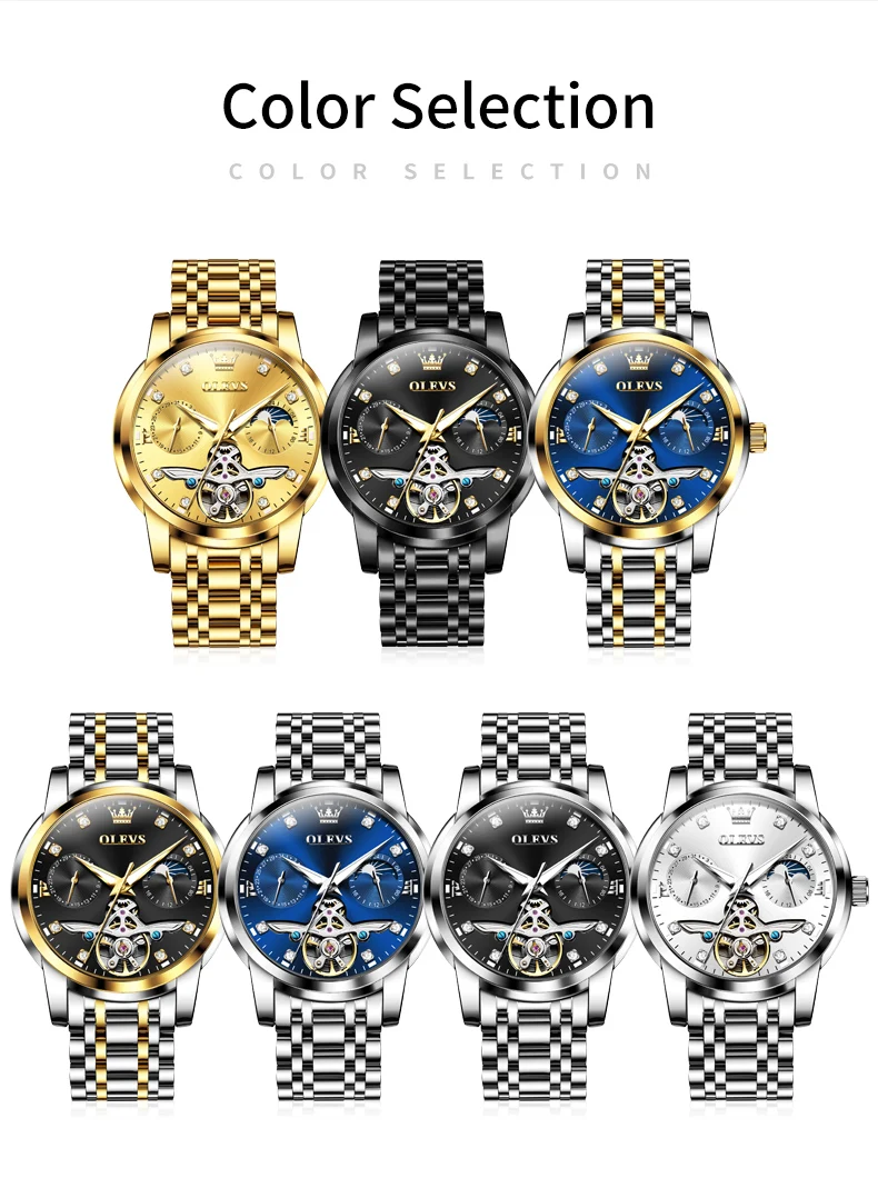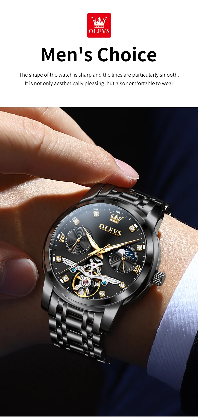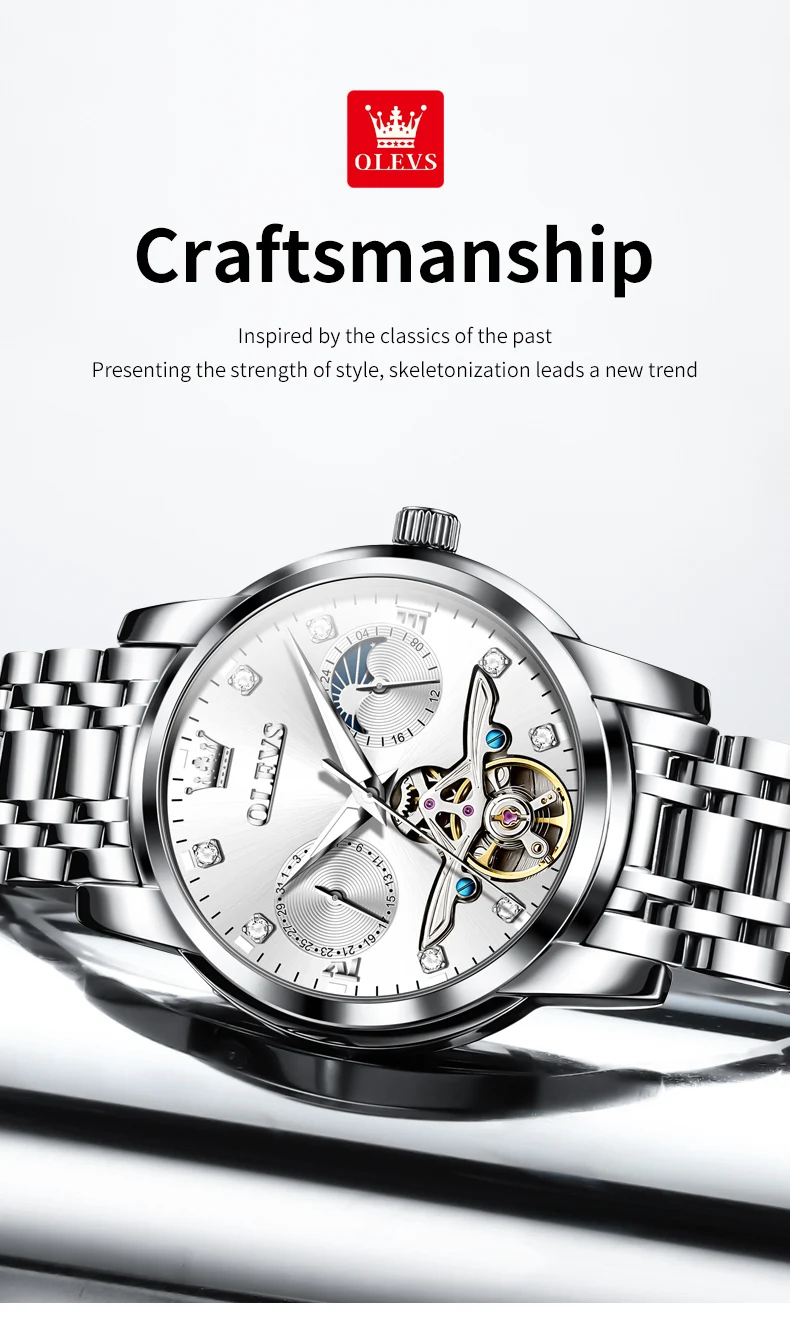 OLEVS 6703 Automatic Mechanical Watch for Men Multi functional Dial 30M Waterproof Luminous Stainless steel Wristwatch
